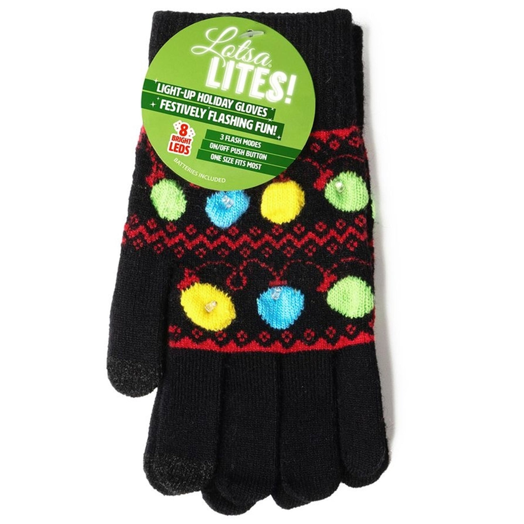 Tech smart festive touch Light-Up Holiday gloves are great for caroling, winter walks, ugly sweater parties and so much more! Warm knit gloves feature four ultra bright LEDs per glove and three flash modes. Pads on thumb and index finger tips allow you to text without removing gloves! Choose your favorite!