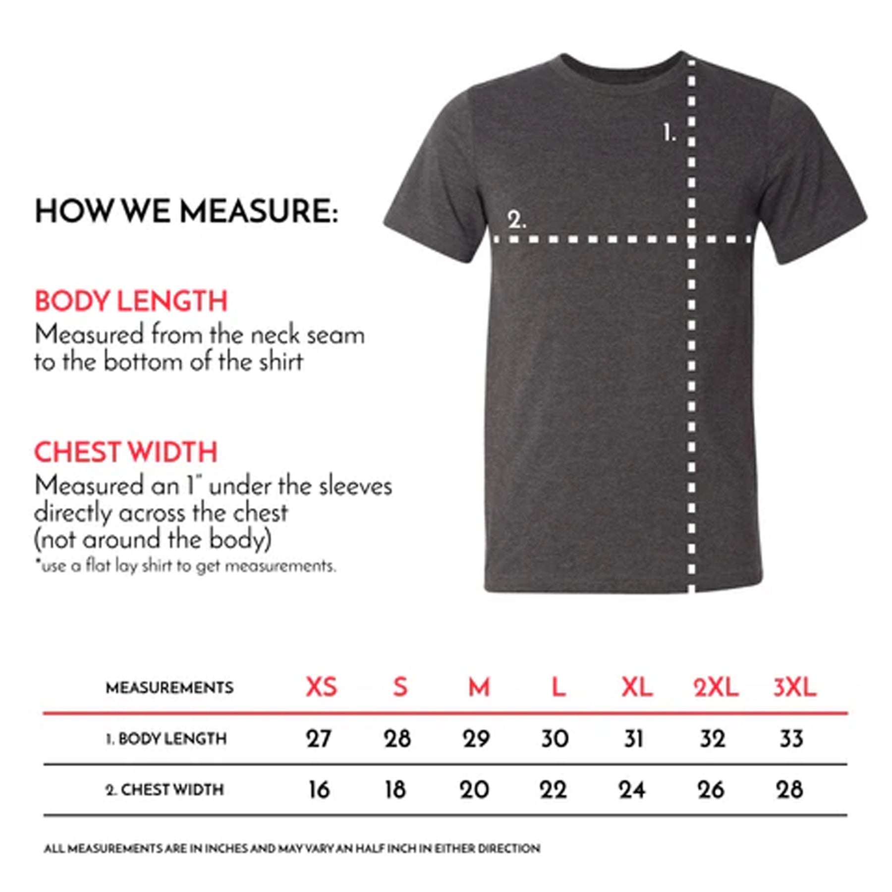 Officially Licensed. Heathered 60% Cotton/40% Polyester, soft-washed. Design is screen printed on the front of the short sleeve t-shirt. USA printed. Care instructions: see shirt label.