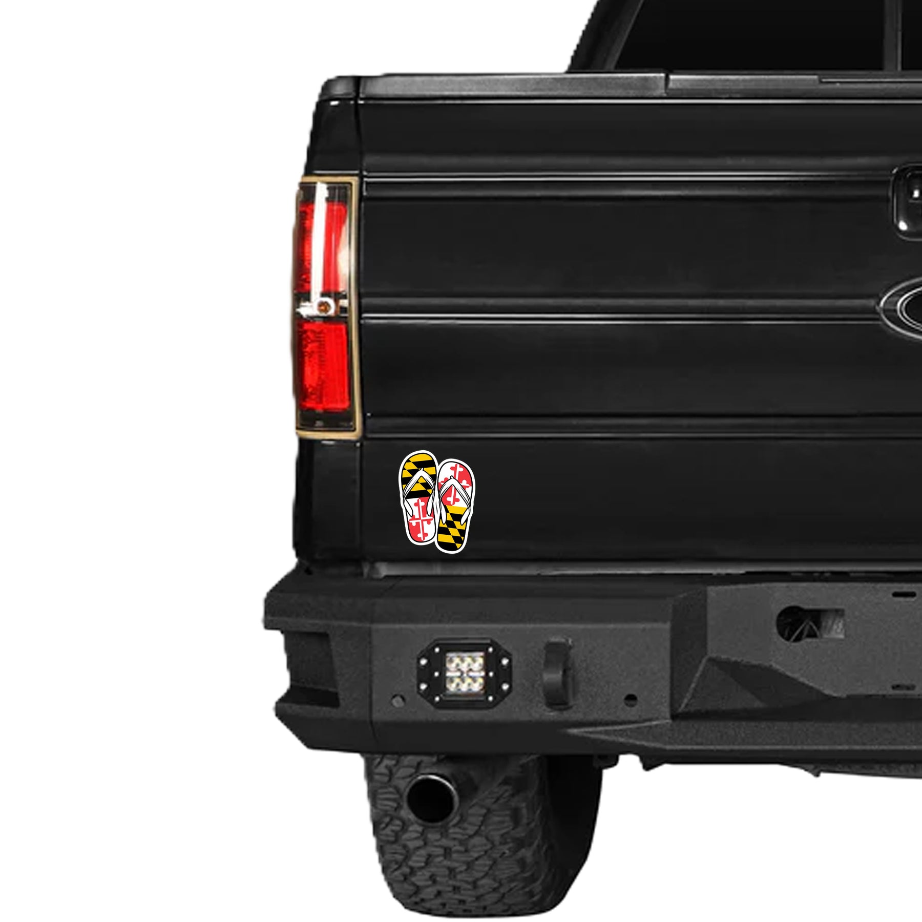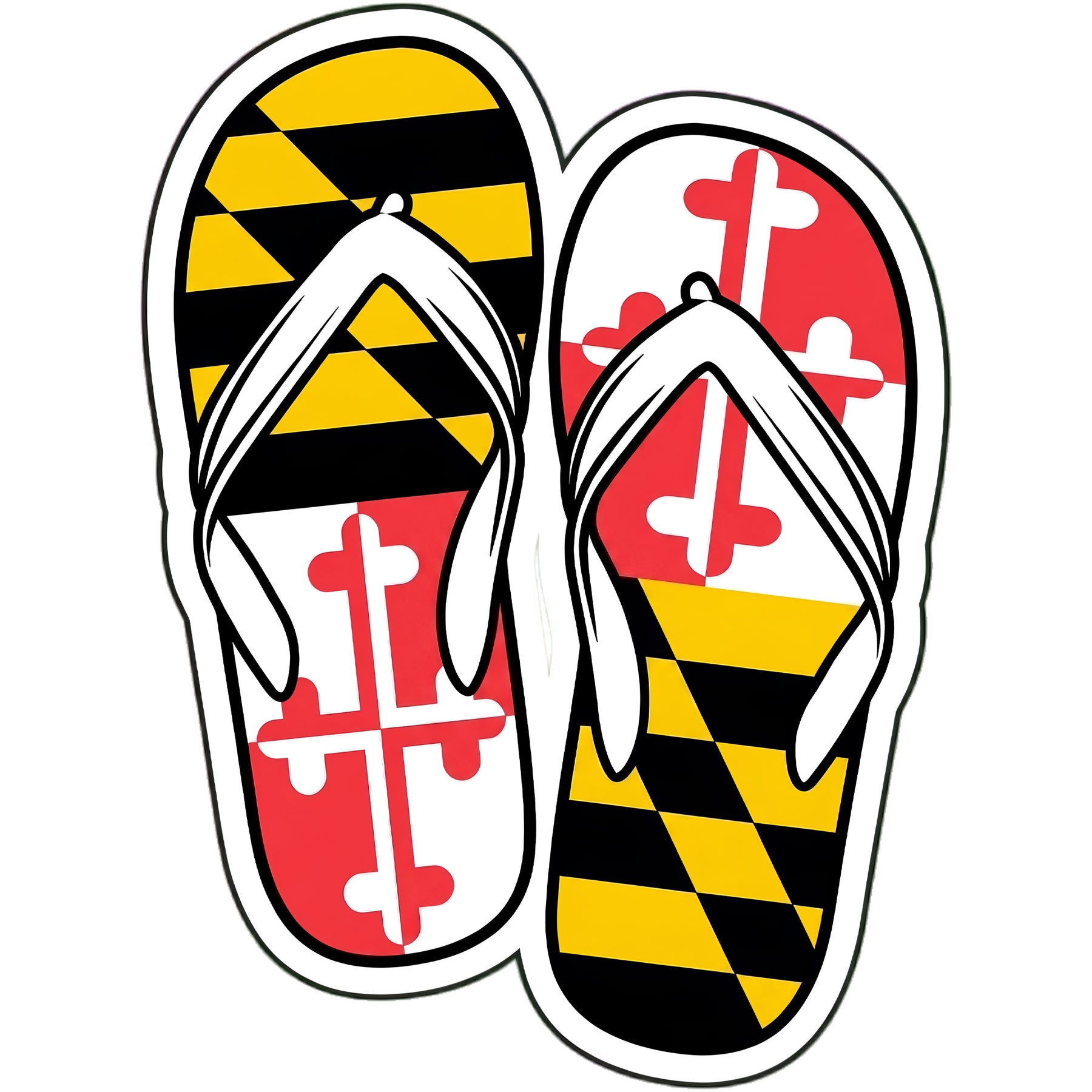 This sticker features a fun Maryland Flag Flip Flops die cut design. Water resistant decal that's great on cars, windows, water bottles and much more! Just peel and stick!