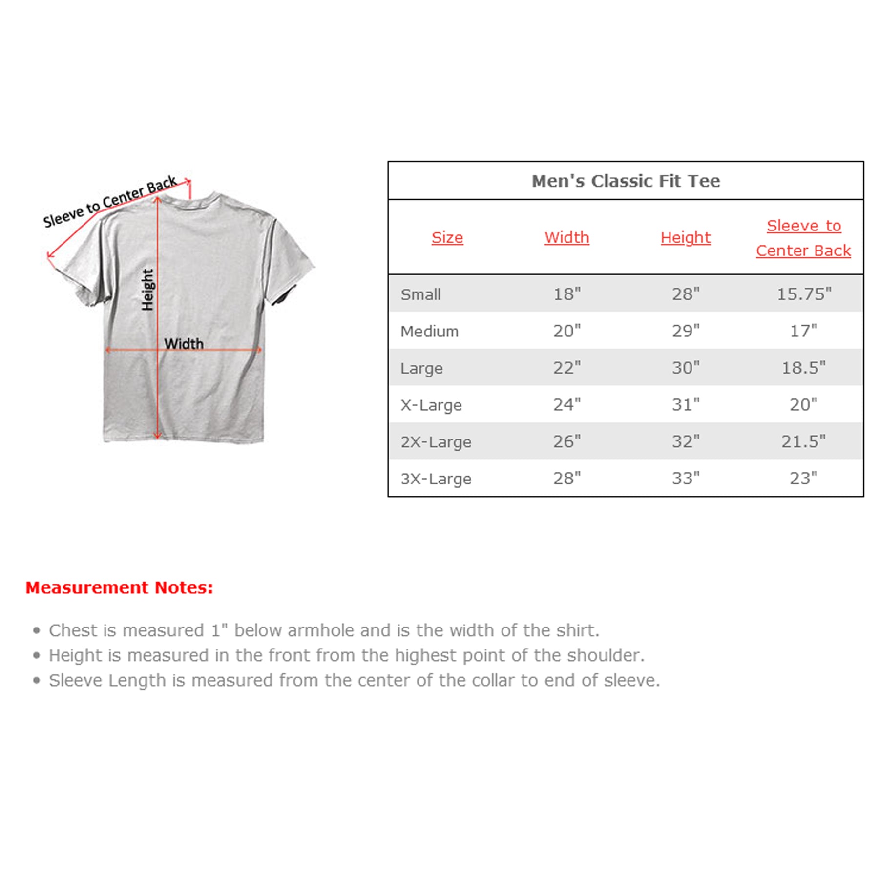 See Size Chart in photos. All measurements are approximate.